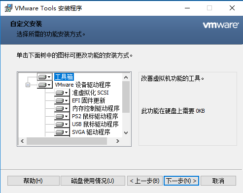 VMware Tools的安装非常简单,点击下一步,大概经过如下几个步骤,就能完成安装。