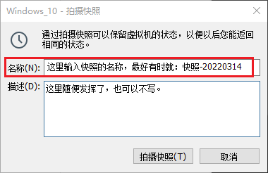 设置好快照的名称,最好设置一下时间。