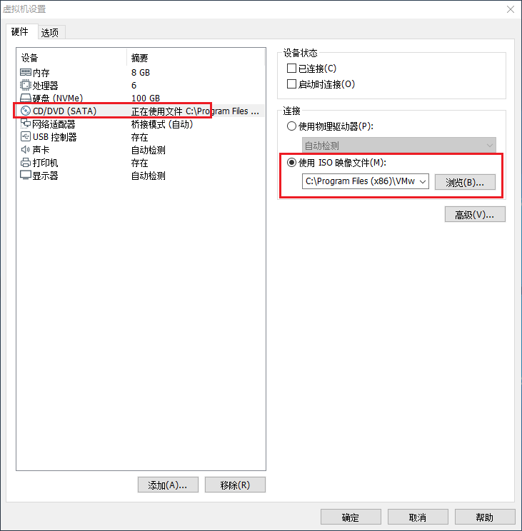 另一个原因是可以在虚拟机安装软件时,不用再把软件包复制进虚拟机内,可以直接通过CD/DVD虚拟光驱,直接把ISO文件,加载到虚拟机的D盘中。