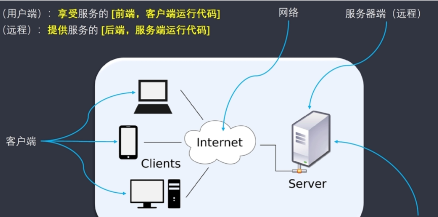 客户端(用户端):享受服务的【前端,客户端运行代码】