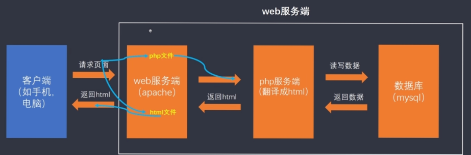 PHP是服务器端的语言,对于web开发(html),非常友好,能嵌入在html文档里面;可以跟html,css和JavaScript代码融合在一起,弥补它们做不了的事情。
