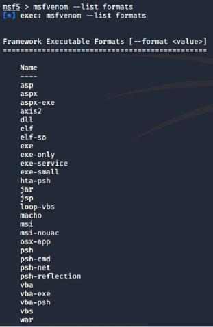 -f, --format 指定输出格式 (使用 --help-formats 来获取msf支持的输出格式列表)