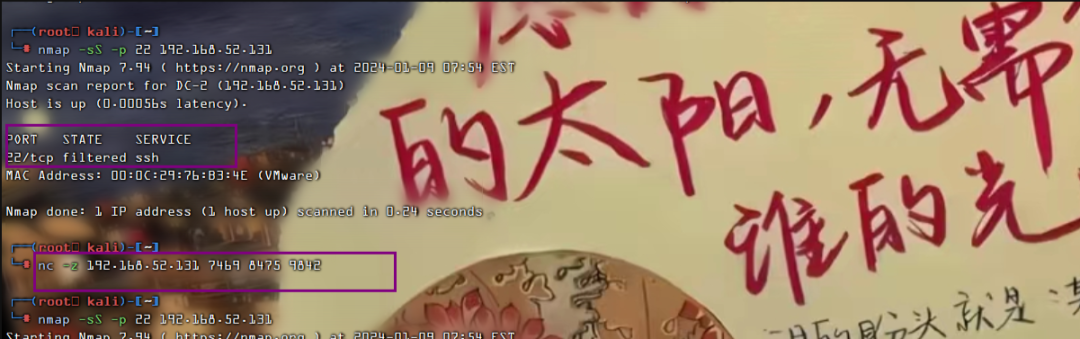 果然有,开启ssh服务得依次敲击7469,8475,9842端口,利用netcat进行敲击