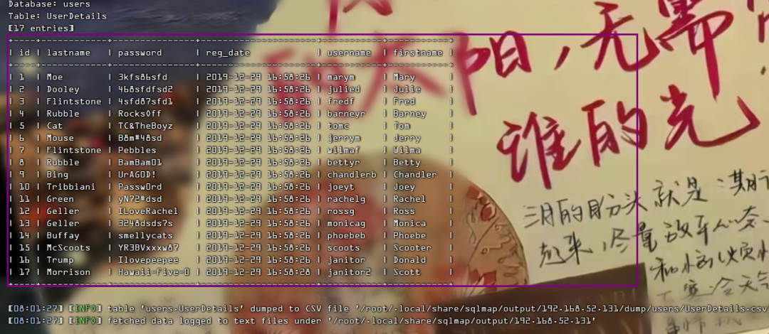 想起之前SQLmap跑出过一个users的数据库, 存放网站用户信息的,我们去瞧一下