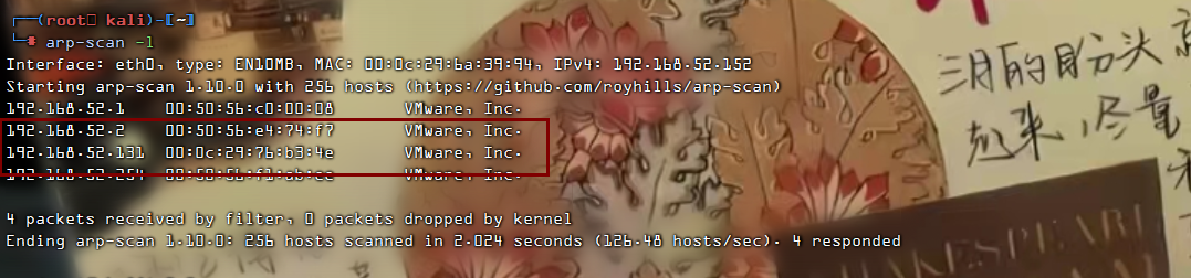 虚拟机开启之后界面如上,我们不知道ip,需要自己探活,网段知道:192.168.52.0/24