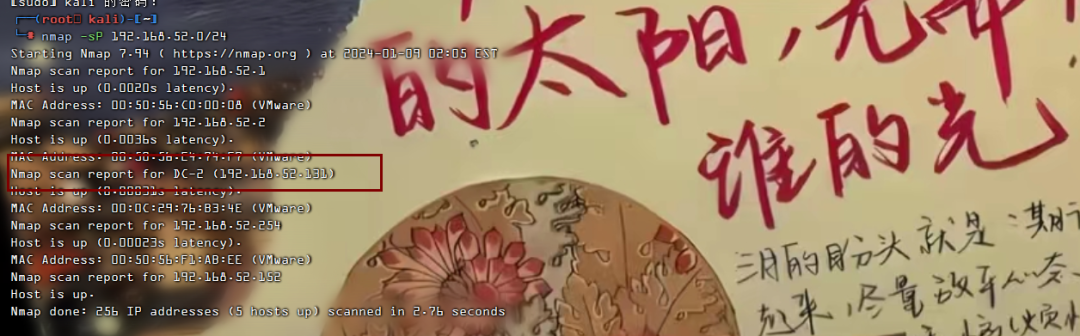 目标就是我们搭建的靶场,靶场IP为:192.168.52.0/24