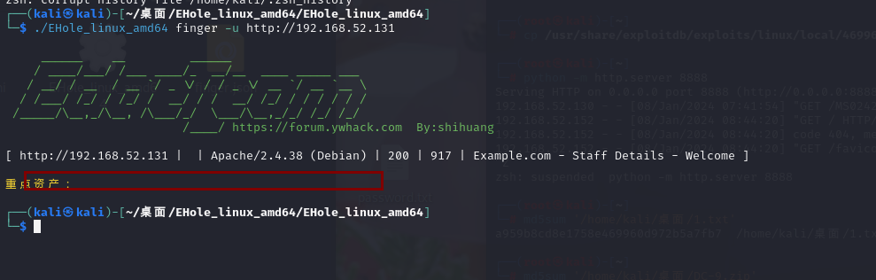 ./EHole_linux_amd64 finger -u http://192.168.52.130