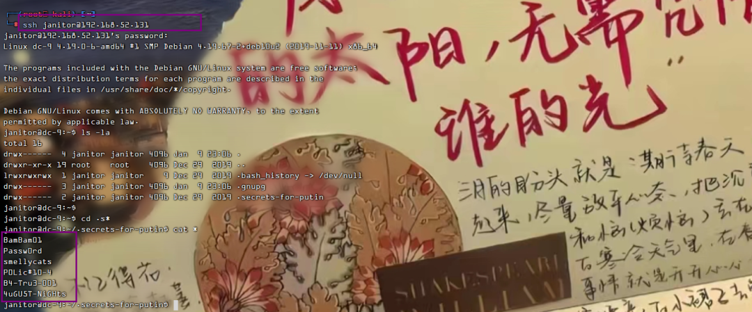 有几个密码,复制到刚才的password文件继续爆破ssh