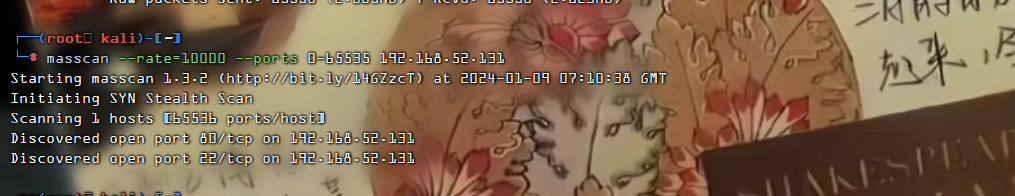 masscan --rate=10000 --ports 0-65535 192.168.52.131