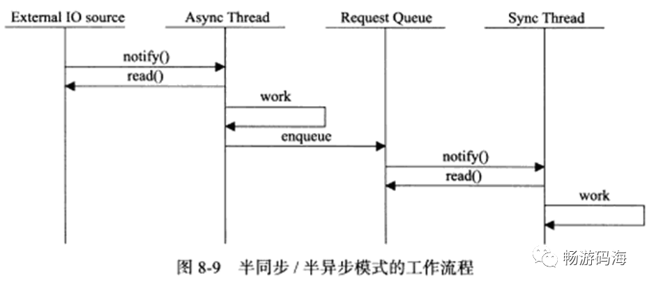 主线程执行数据读写操作,读完成之后,主线程向工作线程通知这一“完成事件”。那么从工作线程的角度来看,它们就直接获得了数据读写的结果,接下来要做的只是对读写的操作进行逻辑处理