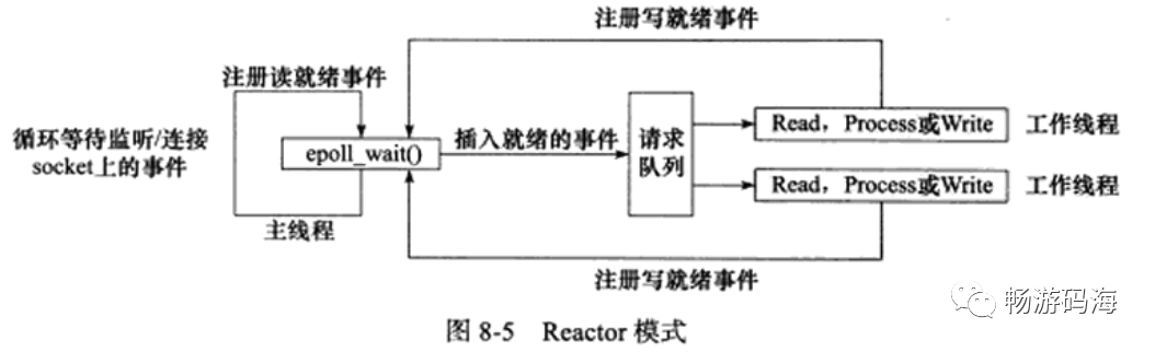 当socket上有数据可读时,epoll_wait通知主线程。主线程则将socket可读事件放入请求队列