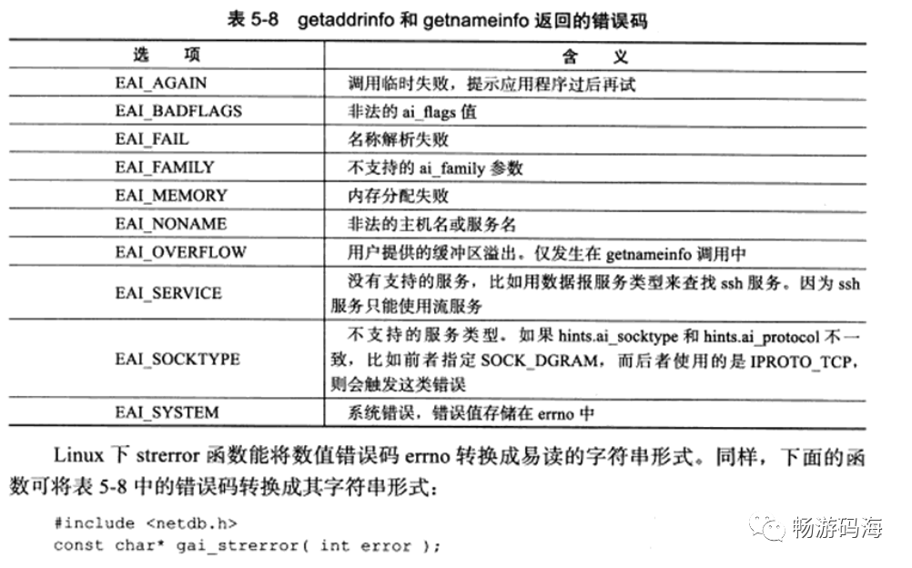 `//用来释放内存 #include<netdb.h> void freeaddrinfo (struct addrinfo* res);`