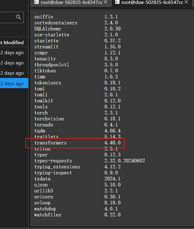 2.2确认transformers的版本是4.40.0;如果不是,删除重新安装对应版本