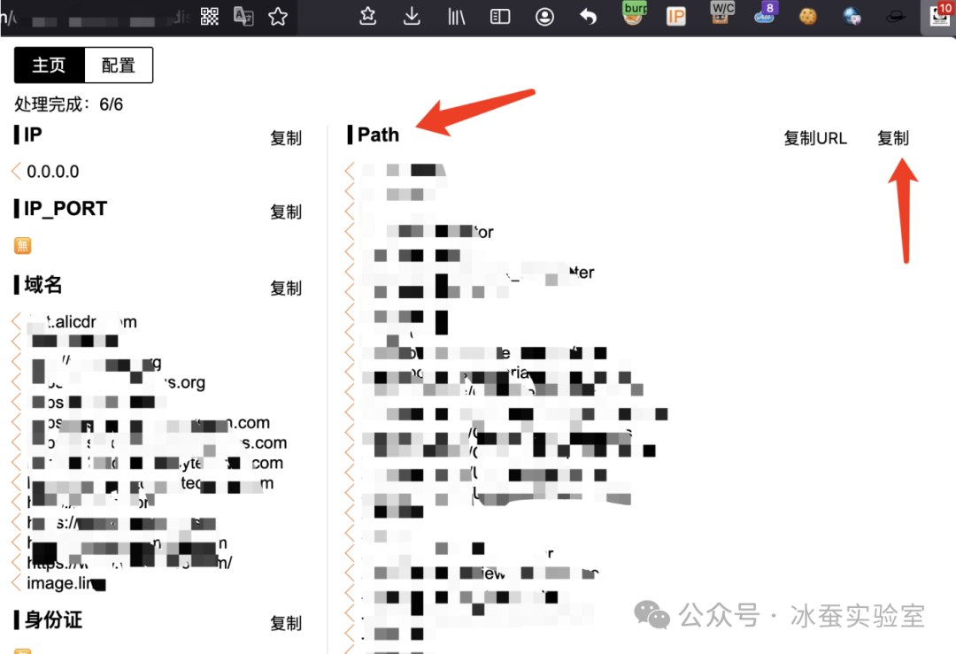 收集js中的接口可以使用脚本过滤,也可以使用火狐插件FindSomething,在path内容中搜集站点js中的相关接口。点击复制,到文本中即可。