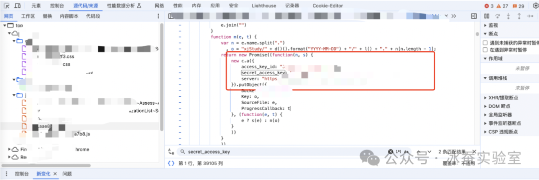 - 前端js代码中的泄漏 前端js中,配置了云存储相关参数,泄漏了ak/sk。