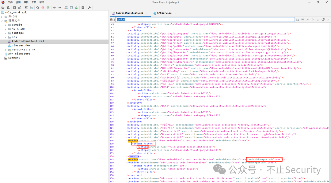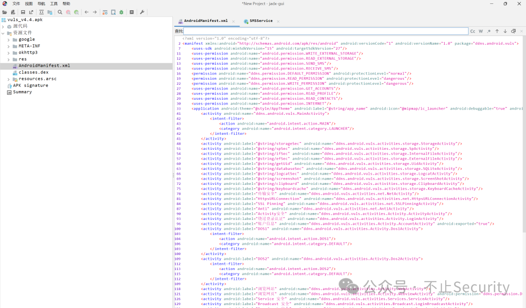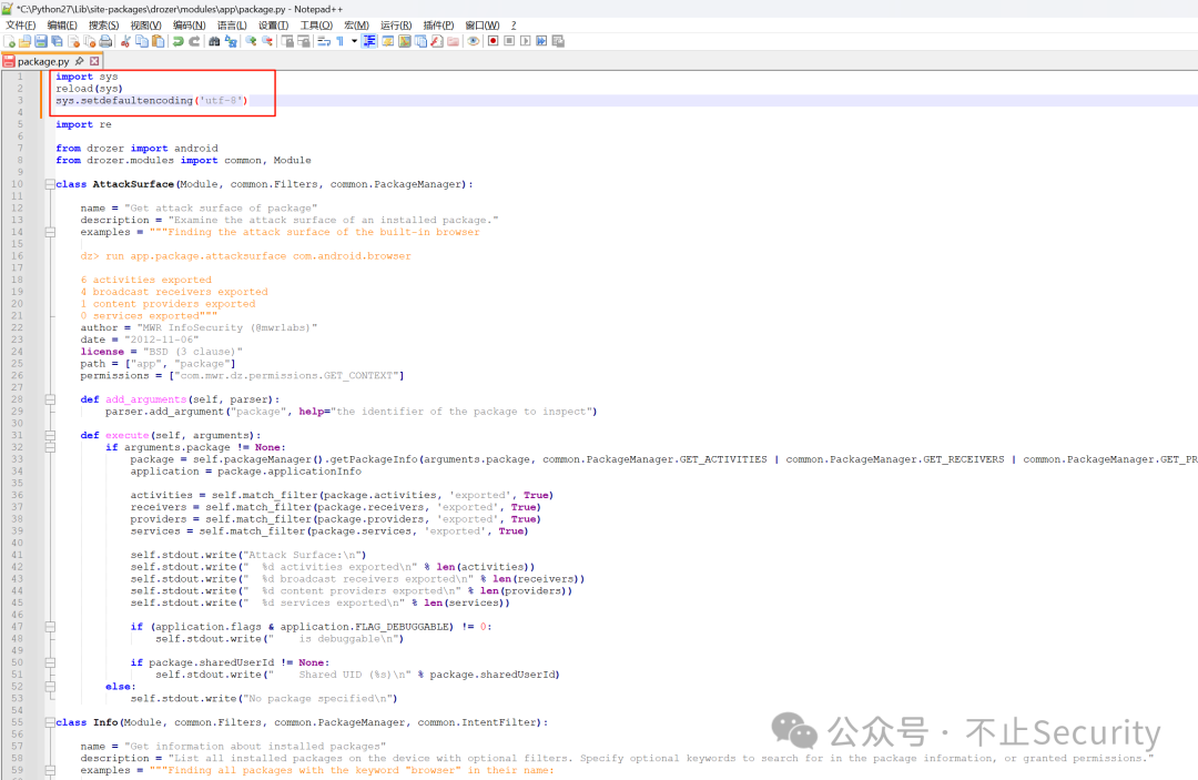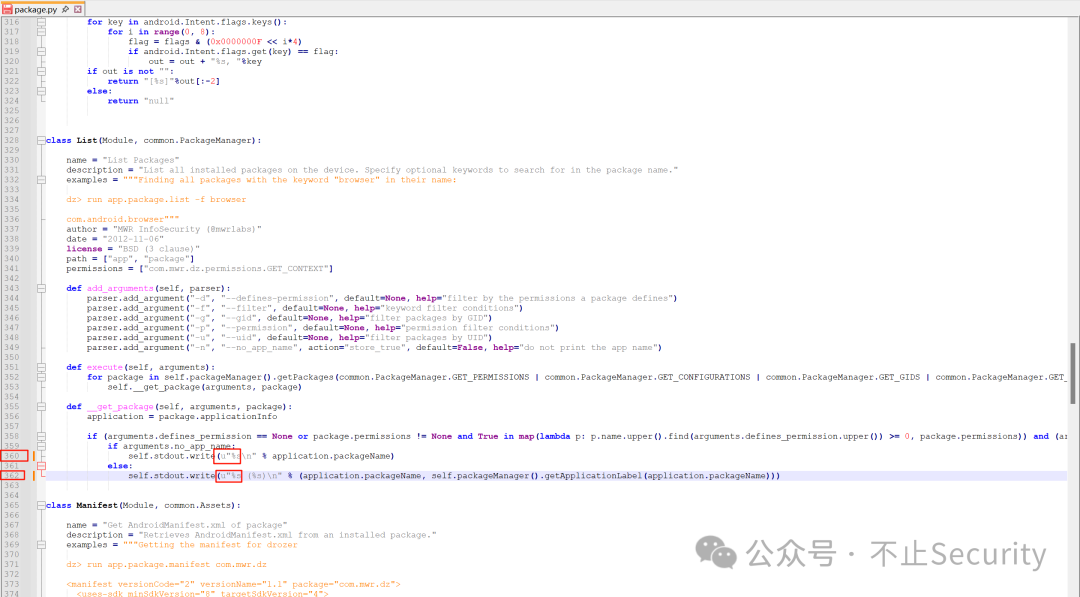 代码审计:Drozer 允许用户快速浏览应用程序的源代码,并快速查找敏感信息和漏洞。