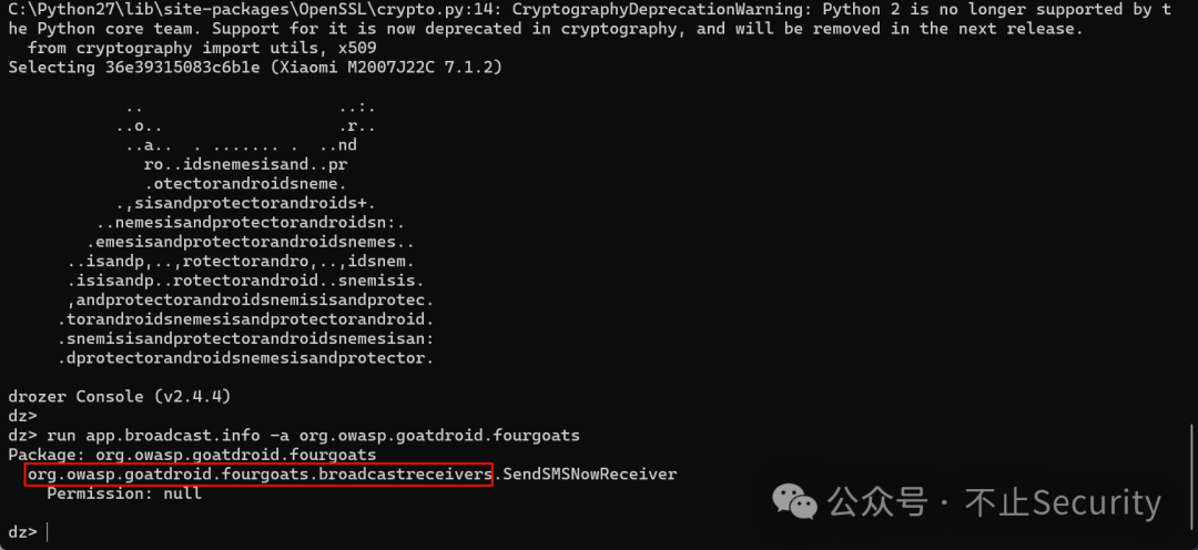 应用程序渗透测试:Drozer 允许用户测试 Android 应用程序的安全性,包括动态和静态分析,以及漏洞扫描等。