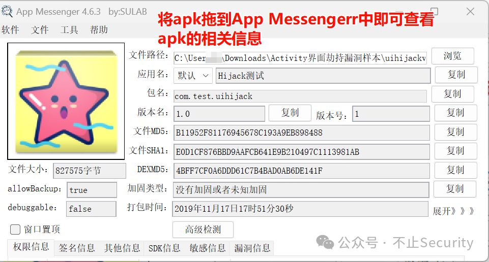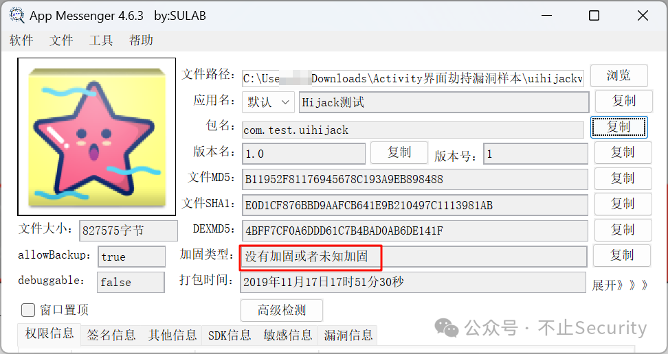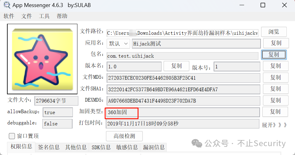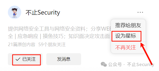 本公众号不止Security旨在分享网络安全领域的相关知识和工具,仅限于学习和研究之用。由于传播、利用本公众号不止Security所提供的信息而造成的任何直接或者间接的后果及损失,由使用者承担全部法律及连带责任,公众号不止Security及作者不为此承担任何责任。如有侵权烦请告知,我们会立即删除并致歉,谢谢。工具****安全性自测