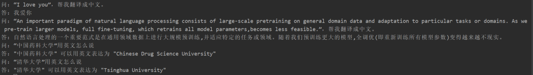 很多同学在微调后出现了灾难性遗忘现象,但我这边并没有出现,对“翻译任务”、“代码任务”、“问答任务”进行测试,采用freeze模型,可以用test_forgetting.py进行测试,具体测试效果如下: