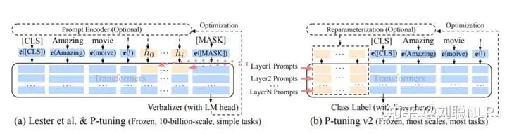 P-Tuning-V2(https://arxiv.org/abs/2110.07602),将大模型的Embedding和每一层前都加上新的参数。