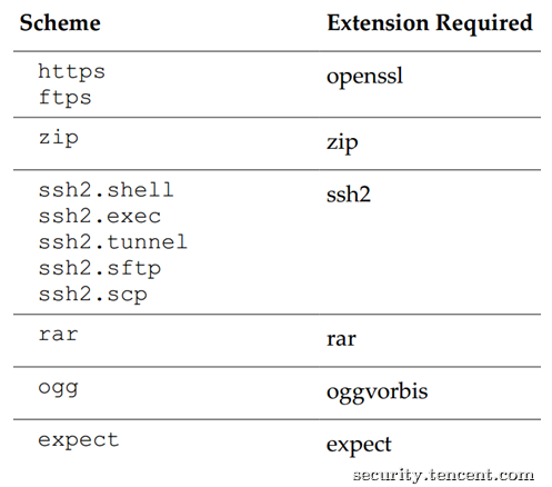 其中php支持的协议会更多一些,但需要一定的扩展支持。