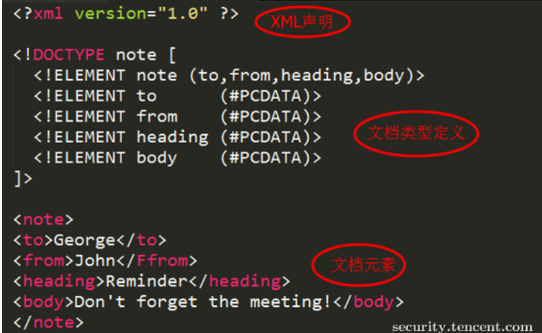 关键词:<!DOCTYPE和<!ENTITY,或者,SYSTEM和PUBLIC。