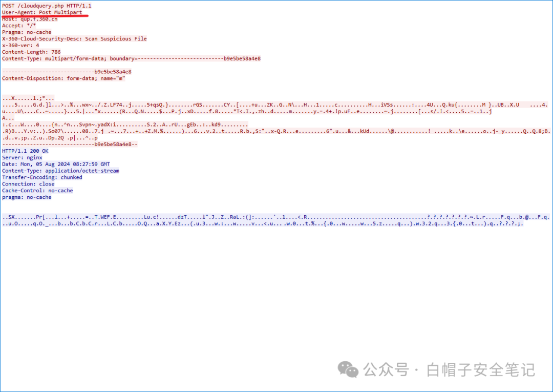 另外这里用了Post_Multipart,至于为什么用这个而不是正常火狐useragnet,360云查杀也用这个,先用着。