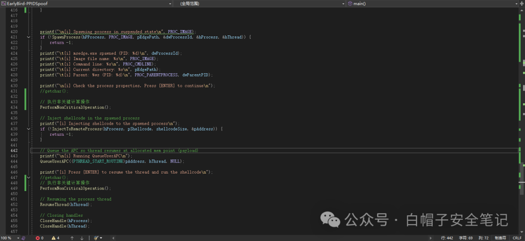 本项目通过Early Bird注入和父进程ID欺骗实现Edge浏览器进程上线。
