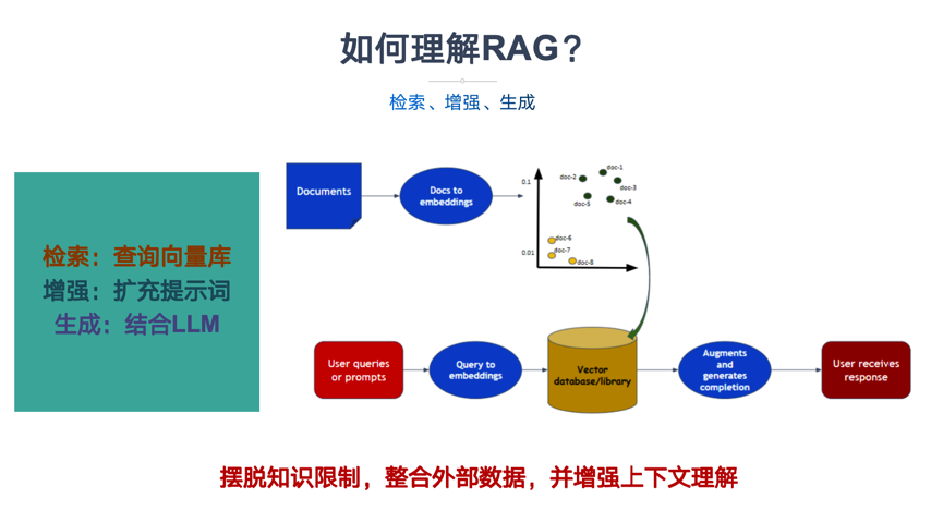 RAG的目的是通过从外部知识库检索相关信息来辅助大语言模型生成更准确、更丰富的文本内容。那我们如何理解RAG的检索、增强和生成呢?