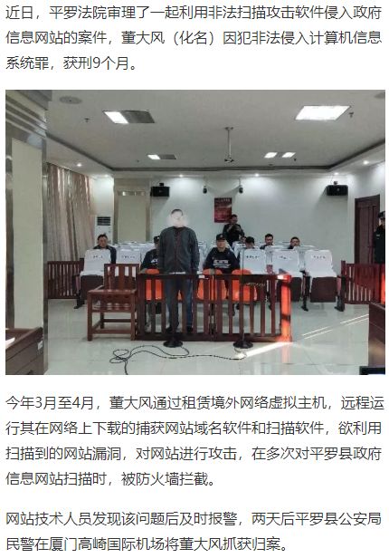 说实话,这小伙只是在扫描,攻击都被防火墙拦下了,啥都没弄到,结果还是一样被判刑,可谓是偷鸡不成蚀把米了……