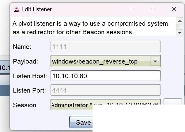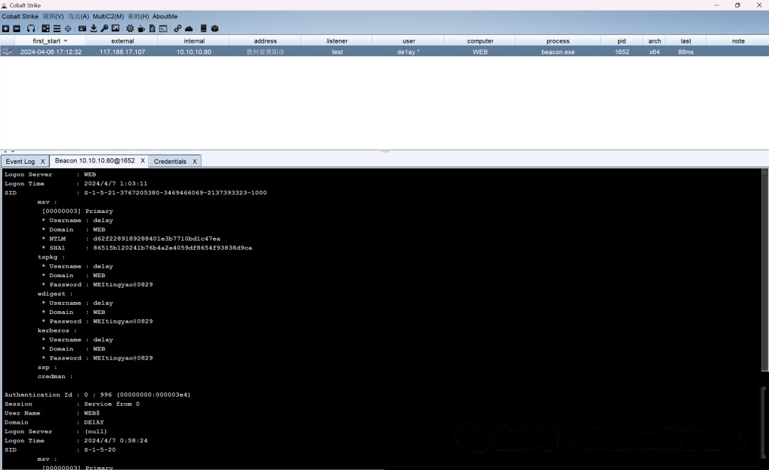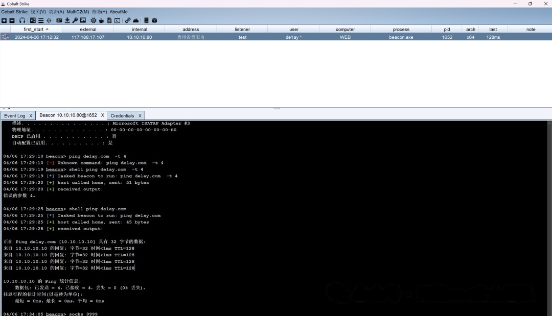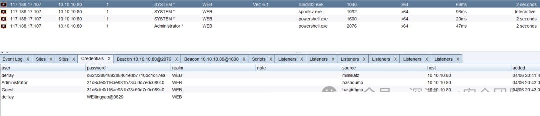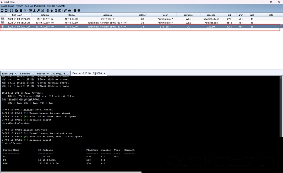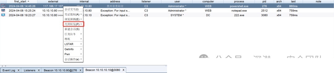 CS上的代理转发功能启动监听器,相当于在10.80的主机上启用一个端口转发流量,然后利用该监听生成一个马子,让MSF传上去运行,直接获取域控权限?这波操作有点“秀”啊!