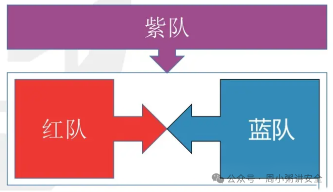 红队 扮演攻击的角色,蓝队 扮演防守、溯源的角色,紫队当然就是甲方了。