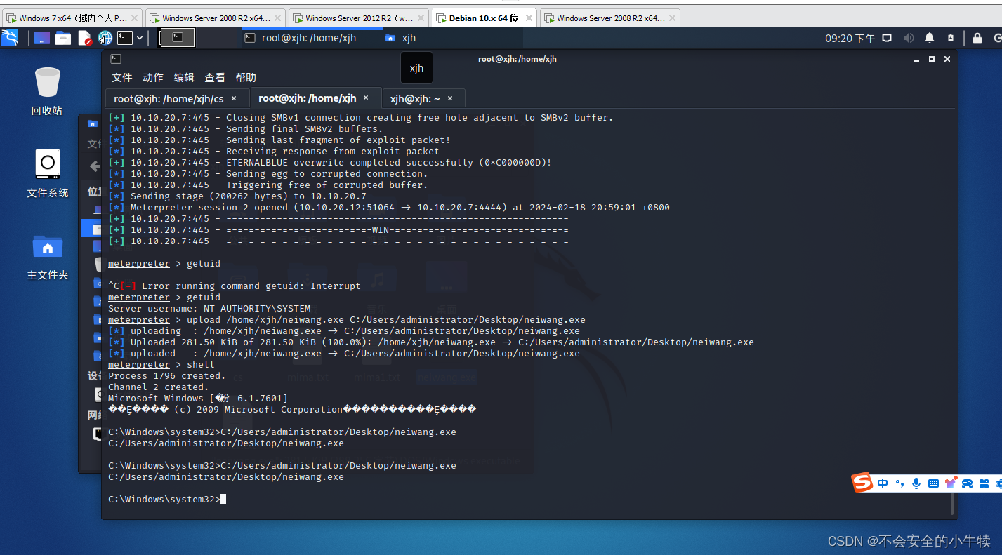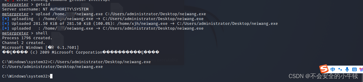 使用cs生成后门,并上传至桌面运行,成功收到目标会话。