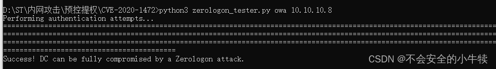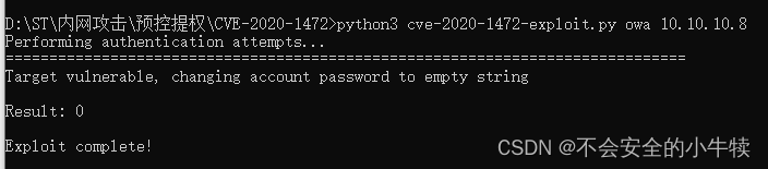 漏洞检测:python3 zerologon\_tester.py owa 10.10.10.8