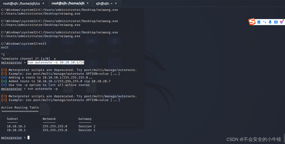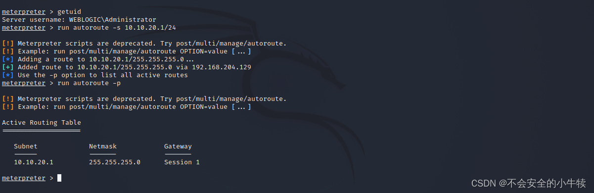 设置回连间隔为0,进行网络环境查看,发现该主机存在10.10.20.1/24网段。