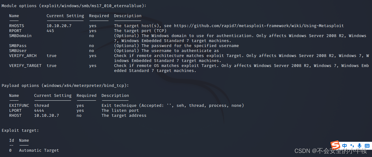 返回页面,使用ms17-010对目标个人主机进行攻击。