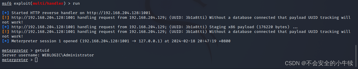 新建会话,选择刚生成的会话进行派送,msf接受会话。