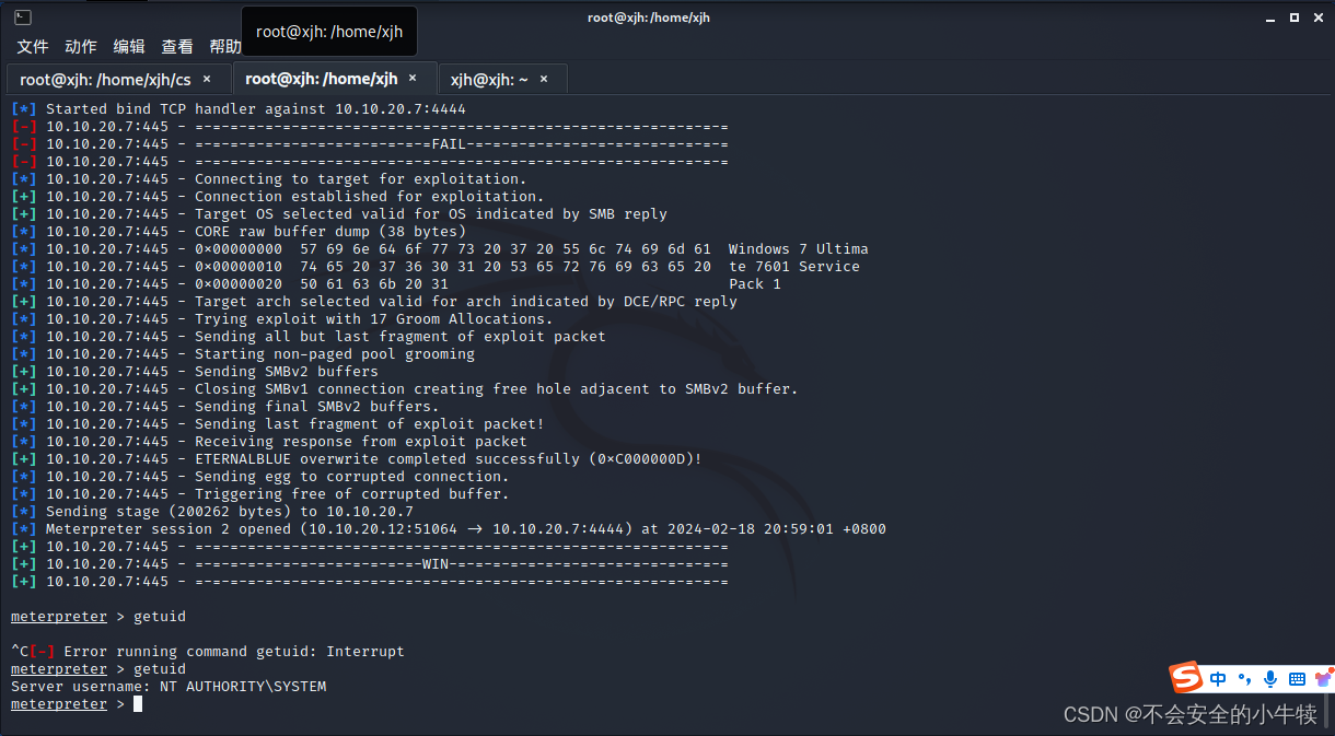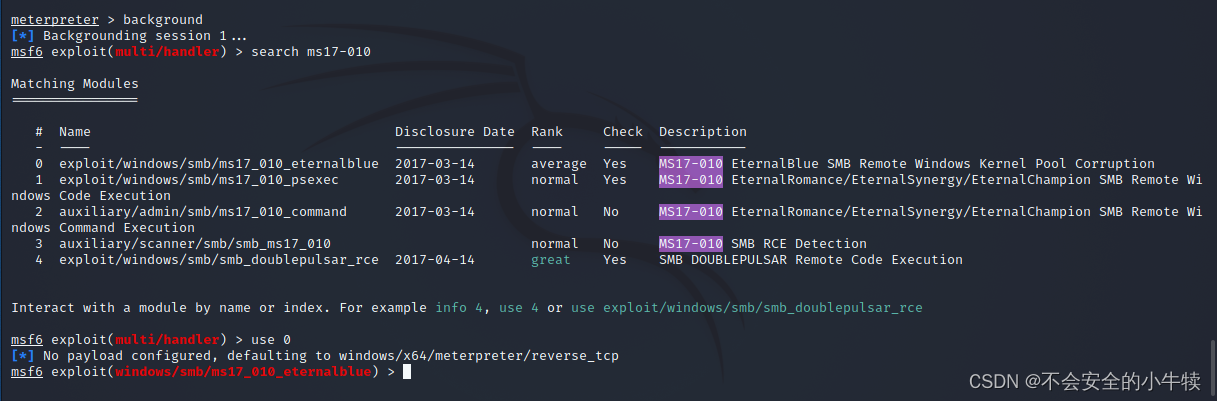 根据检测得知该主机存在ms17-010漏洞,我们使用cs将会话派送至msf进行漏洞利用。