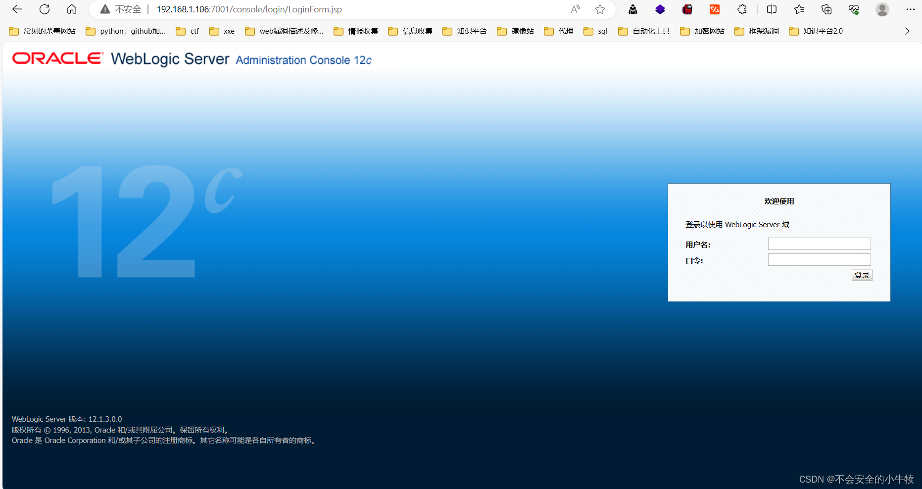 访问页面[http://192.168.1.106:7001/](http://192.168.1.106:7001/ "http://192.168.1.106:7001/ ") ,发现为该网站使用的框架为weblogic,