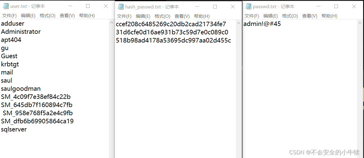 前期通过对个人主机saul的密码收集,得到域用户为saul,密码为admin!@#45