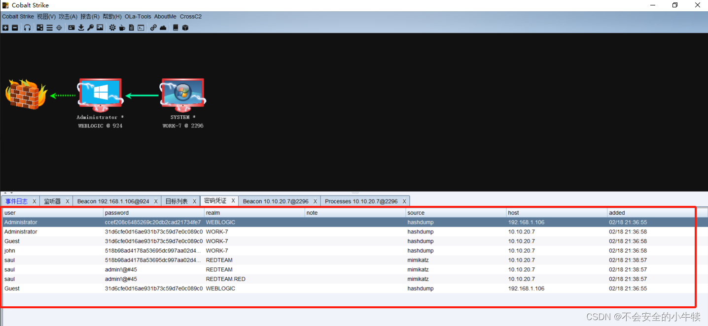 通过cs获取被控主机的明文密码以及NTLM Hash值,
