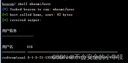 获取域用户saul的sid值:whoami/user,得到值为S-1-5-21-1359007890-1682372173-1631803504-1135