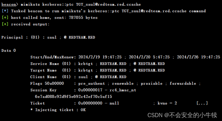 此时生成票据:TGT\_sqlserver@REDTEAM.RED\_krbtgt~redteam.red@REDTEAM.RED.kirbi