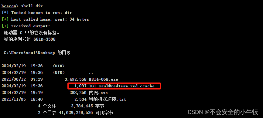 此时会生成票据,我们使用TGS\_Administrator@redteam.red@REDTEAM.RED\_cifs~owa.redteam.red@REDTEAM.RED.kirbi票据进行导入。